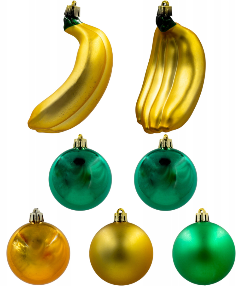 Vánoční Baňky ve tvaru ovoce jsou originálním akcentem, který vyniká na pozadí klasických vánočních dekorací. Bude se líbit dětem i sběratelům neobvyklých ozdob.