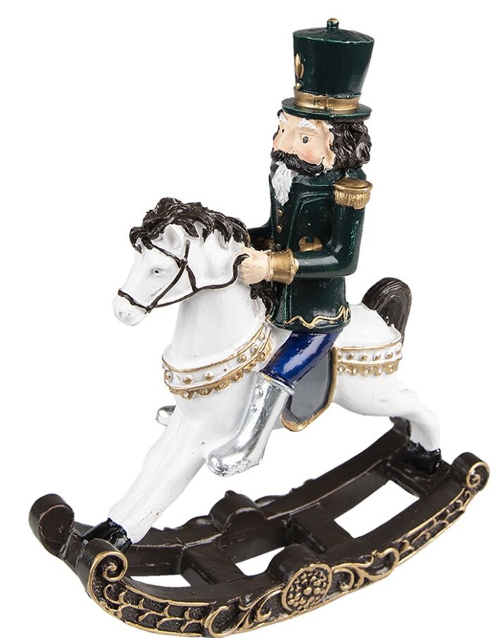 Vánoční dekorace Louskáček v zeleném na houpacím koníkovi - 15*5*18 cmm