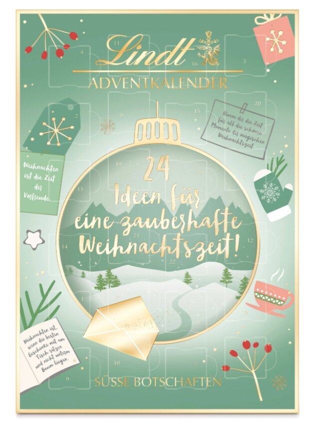 Za každými dvířky tohoto adventního kalendáře se skrývá 24 mini čokoládek, každá se sladkým vzkazem v němčině. Pro kouzelnou radost během adventního období.
