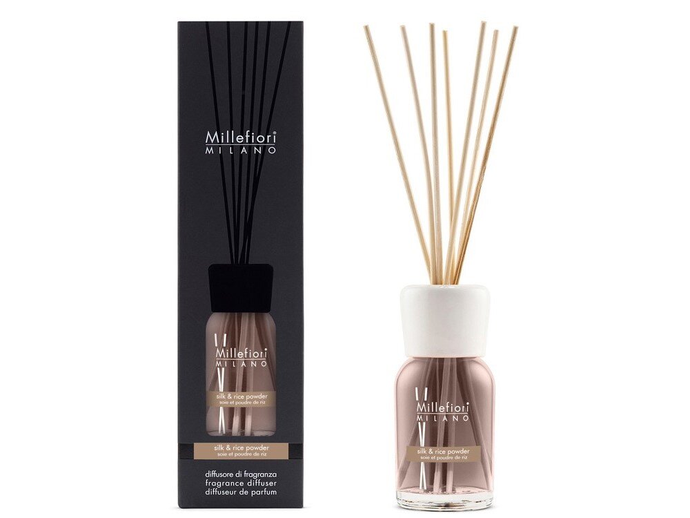Aroma difuzér s tyčinkami italské značky Millefiori z kolekce Milano. Do nádoby stačí vložit tyčinky a vůně se začne uvolňovat do prostoru. Velikost difuzéru 250 ml je vhodná do středně velkých prostor. Náplň vydrží přibližně 3 měsíce, intenzita vůně je dána počtem a délkou vložených stébel. Po vypotřebování můžete zakoupit náhradní náplň 250 ml nebo 500 ml se stejnou nebo jinou vůní. Při použití jiné vůně doporučujeme také vyměnit stébla za nová.