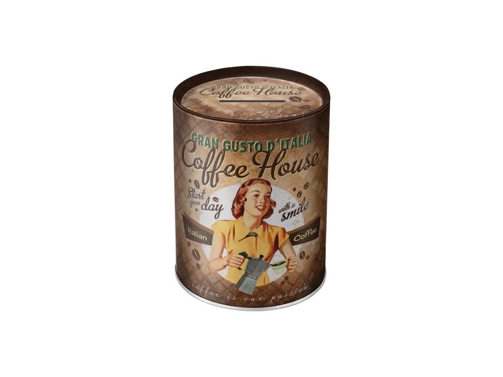 Retro kasička s textem ve tvaru plechovky je originální dekorace.