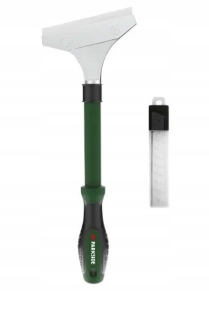 PARKSIDE Škrabka na skleněné povrchy je šikovný a účinný nástroj pro odstraňování zbytků barvy, tapet, lepidla a jiných odolných nečistot. Vybaven šikmou čepelí o průměru 100 mm a pohodlnou, měkkou rukojetí, zaručuje pohodlí při práci a přesnost práce. Navíc je součástí balení až 6 náhradních čepelí v praktickém obalu – připraveno k intenzivnímu použití ihned po vybalení.