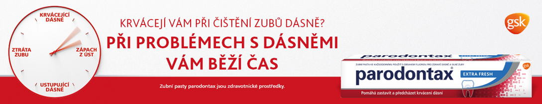 Čtěte pečlivě návod k použití a informace o bezpečném používání zdravotnických prostředků uvedených na obale. Zubní pasty parodontax Fluoride, parodontax Whitening, parodontax Herbal Fresh, parodontax Extra Fresh, parodontax Ultra Clean, parodontax Kompletní ochrana Whitening, parodontax Kompletní ochrana Extra Fresh, jsou zdravotnické prostředky s obsahem fluoridu, určené na problémy s dásněmi. Zubní pasty parodontax Classic jsou zdravotnické prostředky bez fluoridu, určené na problémy s dásněmi.