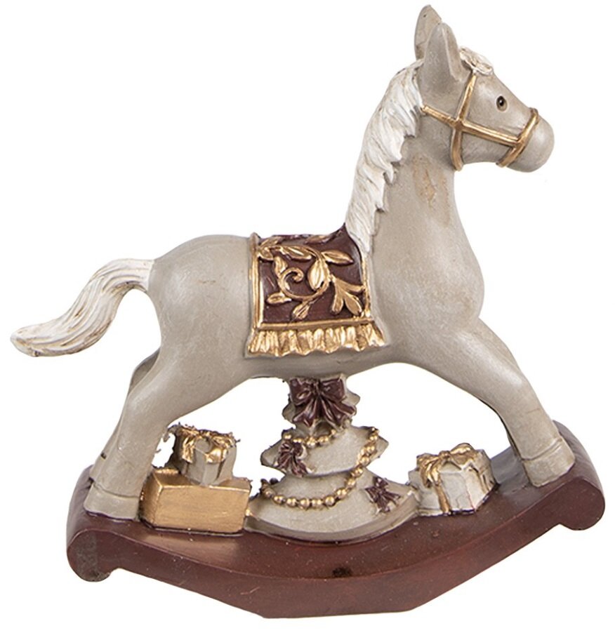 Šedá vánoční dekorace houpací koník s dárky - 11*3*11 cm