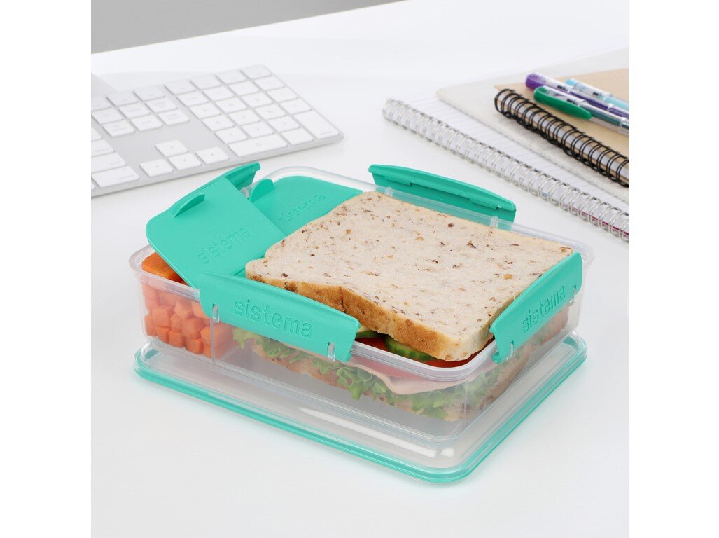 V průběhu dne je důležité nezapomínat na pravidelné občerstvení, které doplní energii a dobře chutná. Svačinový box SISTEMA šetří čas i peníze a hlavně je vhodný pro konzumaci jídla mimo domov. Díky svému praktickému designu a kapacitě 1,0 l nabízí dostatečný prostor pro oblíbené jídlo. Jeho výrobním materiálem je plast. Velmi praktické je šikovné vnitřní uspořádání. Oddělené části jsou určené pro pestrou stravy včetně ovoce, nakrájené zeleniny, energetické tyčinky nebo čehokoliv dalšího. Jednotlivé části uvnitř se dají vyndat. Box na svačinu může být vystaven i vysokým teplotám, což je ideální pro ohřev jídla v mikrovlnné troubě. Nevadí mu ani zmražení, a tak můžete vytvořit zásoby jídla na několik dní a nemusíte se bát, že se zkazí. Oblíbená jídla tak budou vždy po ruce k rychlému ohřátí. Nemusíte se zdržovat ručním mytím, můžete jej svěřit myčce nádobí. Víčko je opatřeno klipy pro dokonalé upevnění.