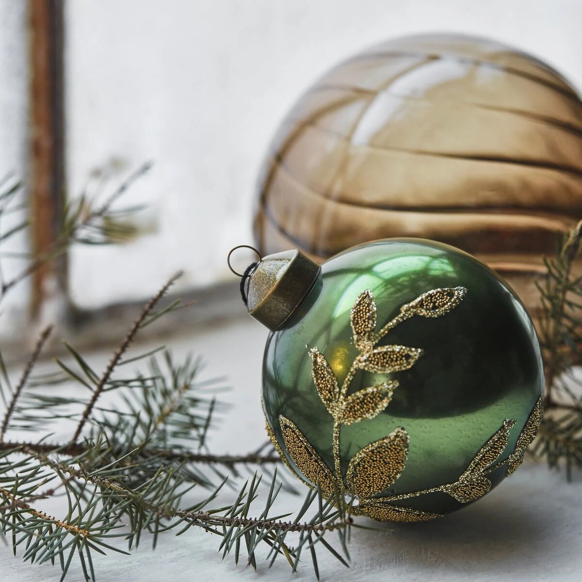 Vánoční ozdoba - zelená koule s listem, 12 cm, Colmore