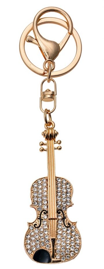 Zlatý přívěsek na klíče/ kabelku housle s kamínky